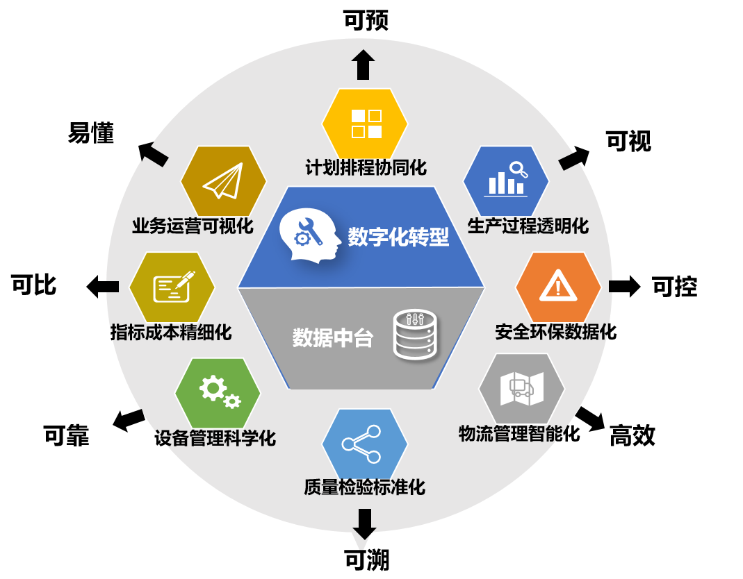 企業(yè)敏捷型數(shù)據(jù)中臺幫助企業(yè)完成數(shù)字化轉(zhuǎn)型,實現(xiàn)生產(chǎn)過程的“自動化、透明化、可視化、精益化”,成為企業(yè)的數(shù)據(jù)大腦,提升企業(yè)的核心競爭力。
